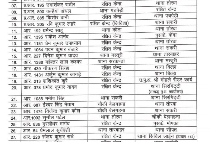 सहायक उप निरीक्षक (ASI) भानू पात्रे को सिविल लाइन से बिलासपुर भेजा गया है।